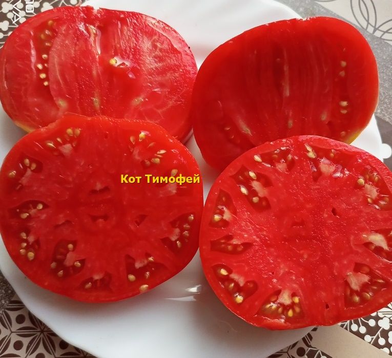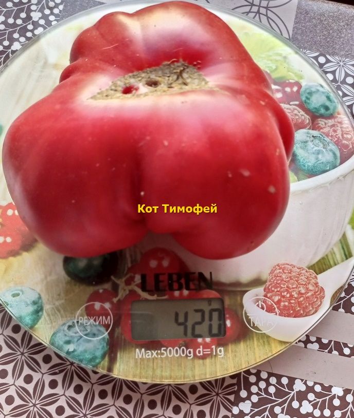 Индетерминантный, среднеспелый сорт. Плоды плоскоокруглые, малиново-красные, мясистые, вкус сладкий с кислинкой, вес 300-500 грамм. Салатный сорт. В упак.10 шт.
