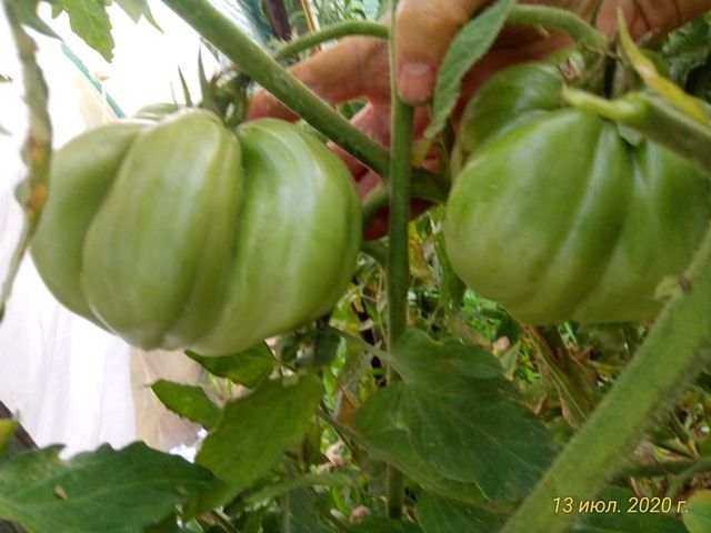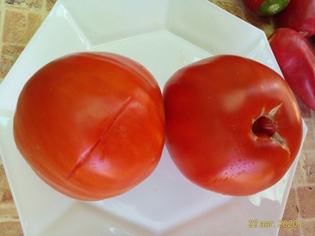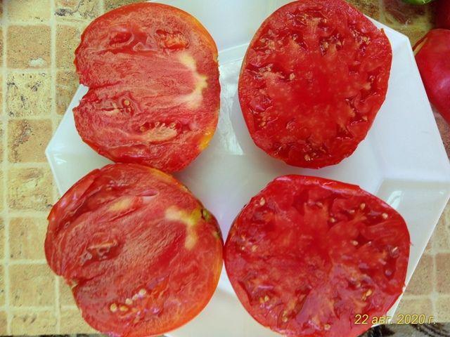 Среднеспелый, высокорослый сорт авторской селекции из США. Плоды в форме широких сердец и округлых бочонков, крупные, 300-700 грамм, некоторые крупнее, ярко-красного цвета. Мякоть сочная, плотная, вкус сбалансированный, кислоты мало. Сорт салатный, а также для переработки. В упак. 8 шт.
