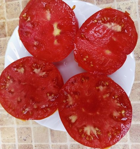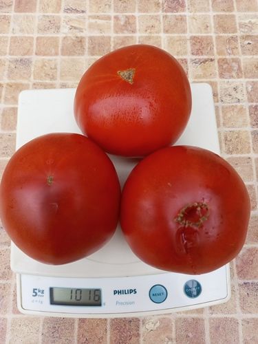 Индетерминантый, высокорослый, среднеспелый, урожайный сорт. Плоды плоскоокруглые, красные, 300-500 грамм, сочные, сладкие. Салатный сорт. В упак. 10 шт.