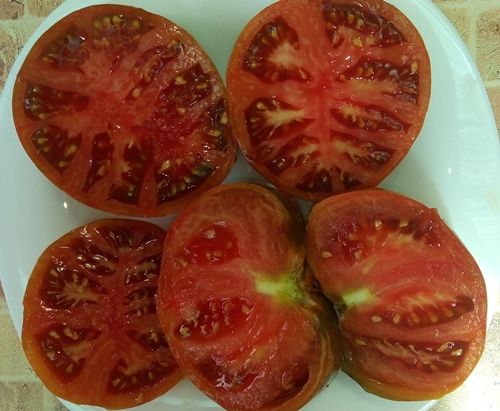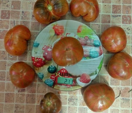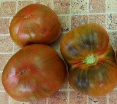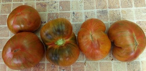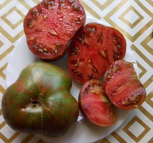 Индетерминантный, среднеспелый сорт. Плоды бордового цвета с желтыми полосками и антоциановыми плечиками, сладкие, сочные, 200-400 грамм. Салатный сорт. В упак. 10 шт.