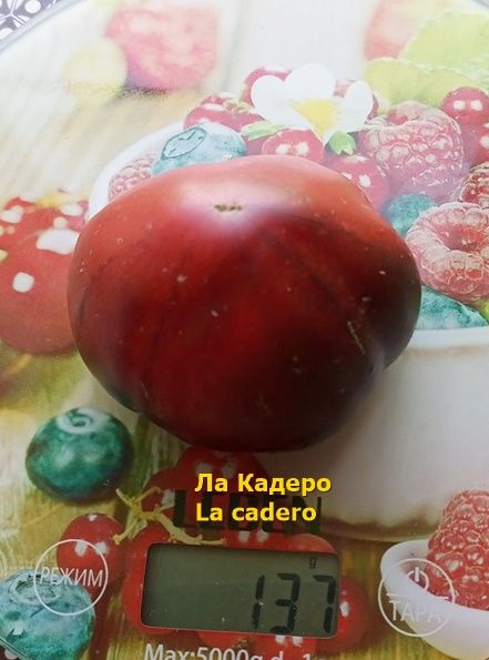 Индет, среднерослый, куст высотой около 1,5, среднеспелый. Плоды плоскоокруглые, некоторые с небольшими ребрами, бордового цвета с темно-фиолетовыми плечиками, плотные, мясистые.. Вес 100-200 грамм. Вкус пряный, со сладостью и кислинкой. Салатный сорт. В упак. 10 шт.