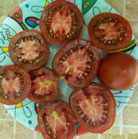 Высокорослый, среднеспелый сорт с длительным периодом плодоношения. Плоды округлые, сливки с маленьким носиком "пипочкой", бордово-коричневые, весом 70-100 граммов, на вкус сладкие, сочные. Хороши для заготовок. В упак. 10 шт.