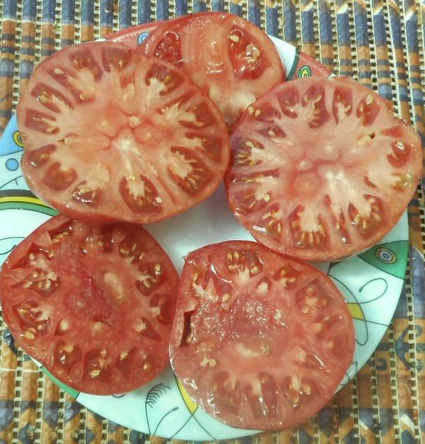 Среднеспелый, высотой до 1 метра, сорт любительской селекции. Плоды плоскоокруглые, слегка приплюснутые, темно-малинового цвета, мясистые, весом 200-350 грамм.