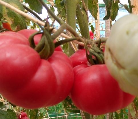 Высокорослый, среднеспелый сорт. Плоды плоскоокруглые, слегка ребристые, малиново-красные, вес 200-300 грамм. Вкус гармоничный, со сладостью и кислинкой. Салатный сорт и для переработки на сок, пасту. В упак. 10 шт