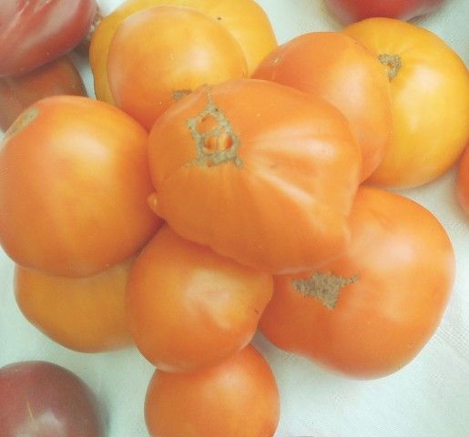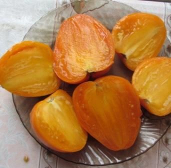 Описание Сибирского сада Крупноплодный, среднеспелый сорт для теплиц и открытого грунта. Выделяется крупными почковидными плодами теплого медово-желтого цвета, массой до 600 г. Мякоть томатов очень приятная, сладкая, почти без кислот, полезна для питания людей с заболеваниями кишечного тракта.
