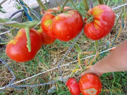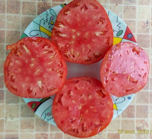 Индетерминантный, среднеспелый сорт, Плоды плоскоокругые, красного цвета, вес 400-600 грамм. Мясистый, с насыщенным вкусом. Салатный сорт, а также для приготовления густых соков, соусов, пасты. В упак. 10 шт.