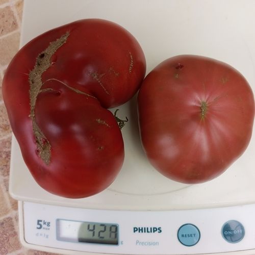 Индетерминантный (в теплице ок. 1,7м), среднеранний сорт, выведен Дэном Гилмором. Плоды плоскоокруглые, розовые-пурпурные с более темными плечиками. Вес 200-350 грамм. Мякоть сладкая, сочная, очень вкусная. Салатный сорт. В упак. 10 шт.