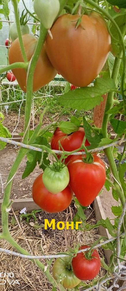 Индетерминантный, среднеспелый сорт. Плоды - очень крупные красные округлые сердца, весом 300-700 грамм, плотные, мясистые, с малым количеством сока и семян. Очень вкусный салатный сорт. В упак. 8 штук.