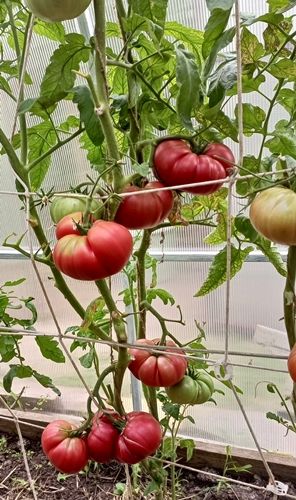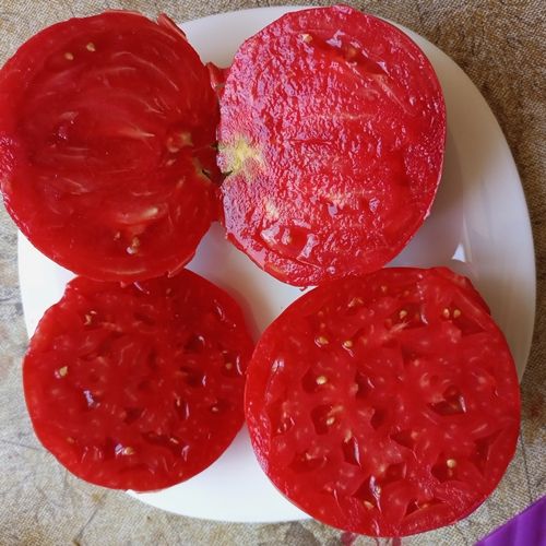 Индетерминантный, высокорослый (1,6 м в ОГ), среднеспелый сорт. Плоды плоскоокруглые, с небольшими ребрами у плодоножки, малиново-красные, отличного вкуса, мясистые, сладкие. Очень вкусный салатный сорт. В упак. 10 шт.