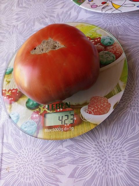 Среднеспелый, высокорослый сорт, урожайный, с длительным периодом плодоношения, куст в теплице около двух метров. Плоды плоскоокруглые, оранжево-красные с антоциановыми плечиками. Мякоть малинового цвета, мясистая, плотная, сочная, сладкая, с фруктовым вкусом. Вес плодов от 250 до 400 грамм, отденые могут быть крупнее. Очень вкусный салатный сорт. В упак. 8 шт.