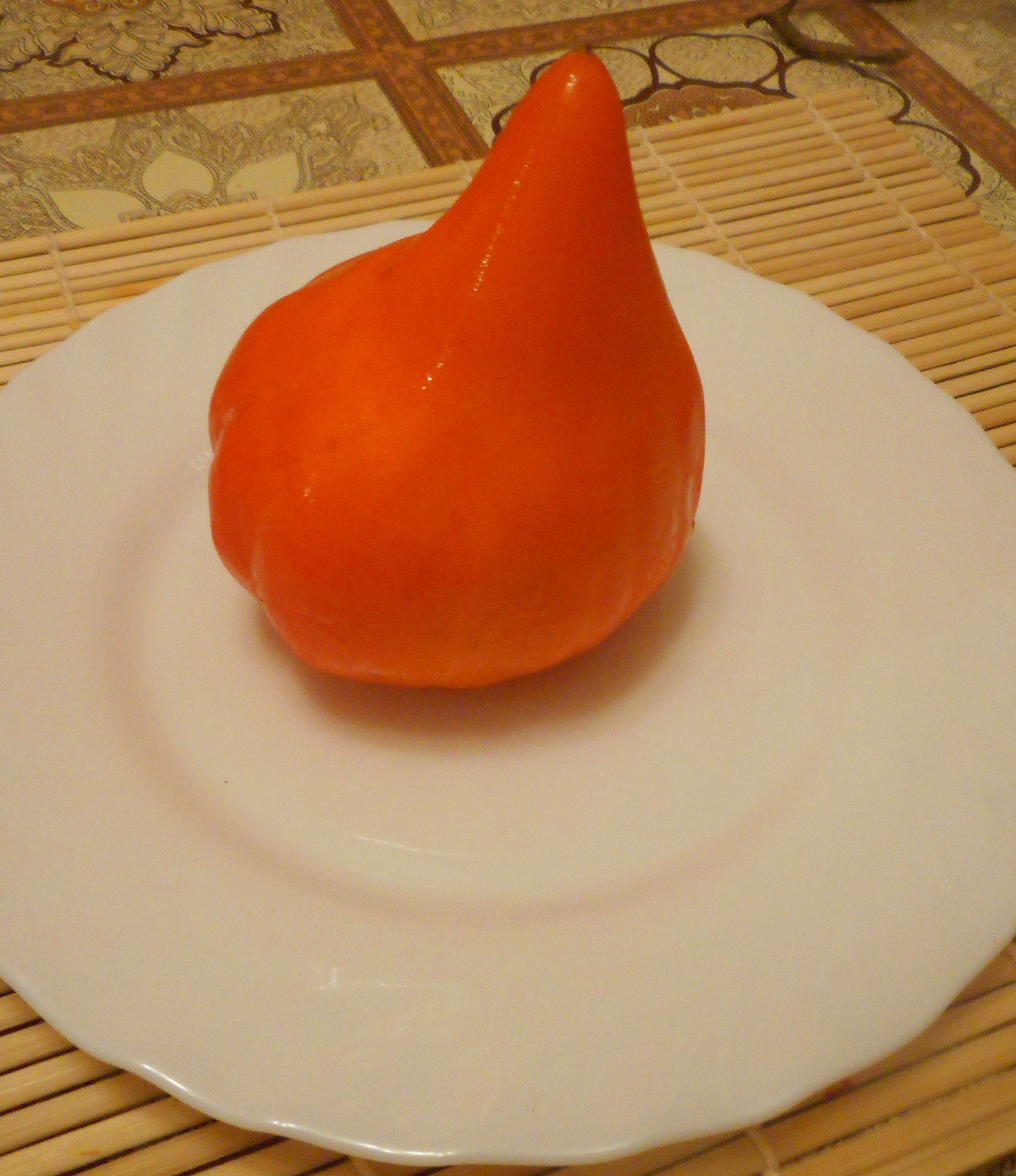 Высокорослый, среднепоздний сорт. Плоды сердцевидные, с очень заостренным длинным носиком, насыщенно желтого цвета, мясистые, мало семян и практически нет сока. Мясистые, сладкие. Сорт урожайный. Салатный сорт и для всех видов переработки. В пакете 8 семян.