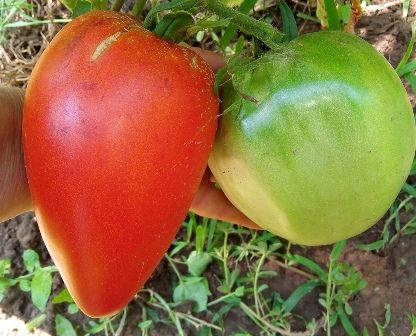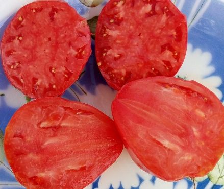 Индетерминантный, среднеспелый сорт томата. Плоды крупные и среднего размера красные сердца, с вытянутой верхушкой, мясистые, сока совсем мало. Вкус сладкий, без кислоты, хороший. Вес 250-600 грамм. В упаковке 10 шт.