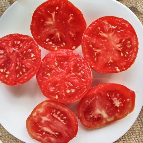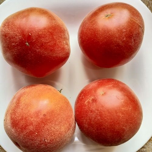 Детерминантный сорт, высота куста в ОГ была около 1 метра, среднеспелый. Плоды округлые, оранжево-красные, с небольшим опушением, кисло-сладкие, вес 100-200 грамм. Салатный сорт. В упак. 10 шт.