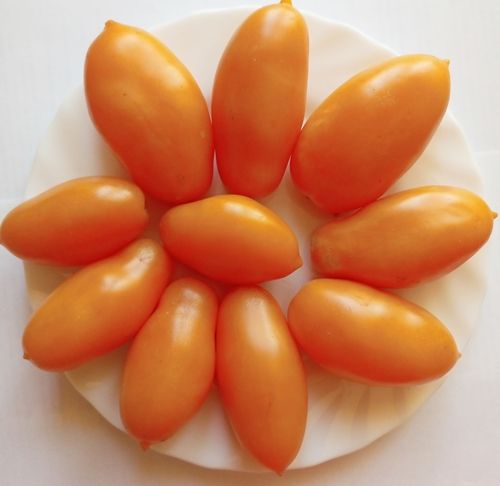 Высокорослый среднеспелый сорт. Плоды вытянутые сливки, оранжево-персикового цвета, вес 60-80 грамм, сладкие, мясистые. Сорт универсальный, отлично подходит для цельноплодного консервирования. В упак 10 шт.