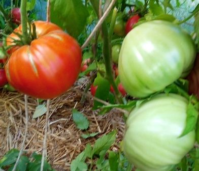 Индет, среднеспелый. Плоды округло-сердцевидные, крупные, малиново-красные, мясистые, сладкие. Вес 200-600 грамм. Салатный сорт и на густой сок. В упак. 10 шт.