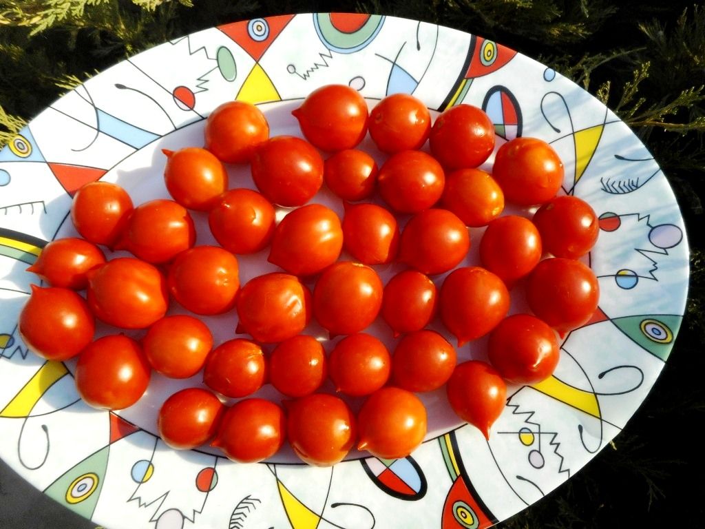 Сорт от Гусева Д. Отличается от сорта Гераниум кисс высотой куста, в ОГ вырос около 1,3 метра. форма плода не совсем округлая, еле заметно приплюснутая, заметны небольшие грани и более вытянутый остренький носик. Кисть больше. Плоды немного плотнее.