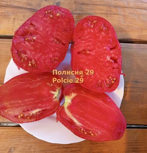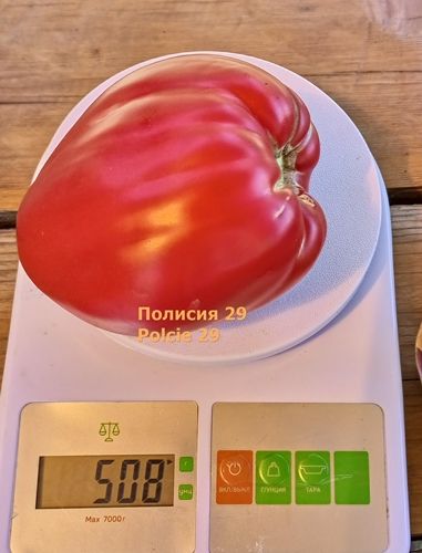 Индетерминантный, среднеспелый сорт. Плоды сердцевидные, малиново-красные, весом 200-500 грамм, плотные, мясистые, сочные. Вкус сладкий. Салатный сорт, а также для переработки на вкусный сок. В упак. 8 шт.