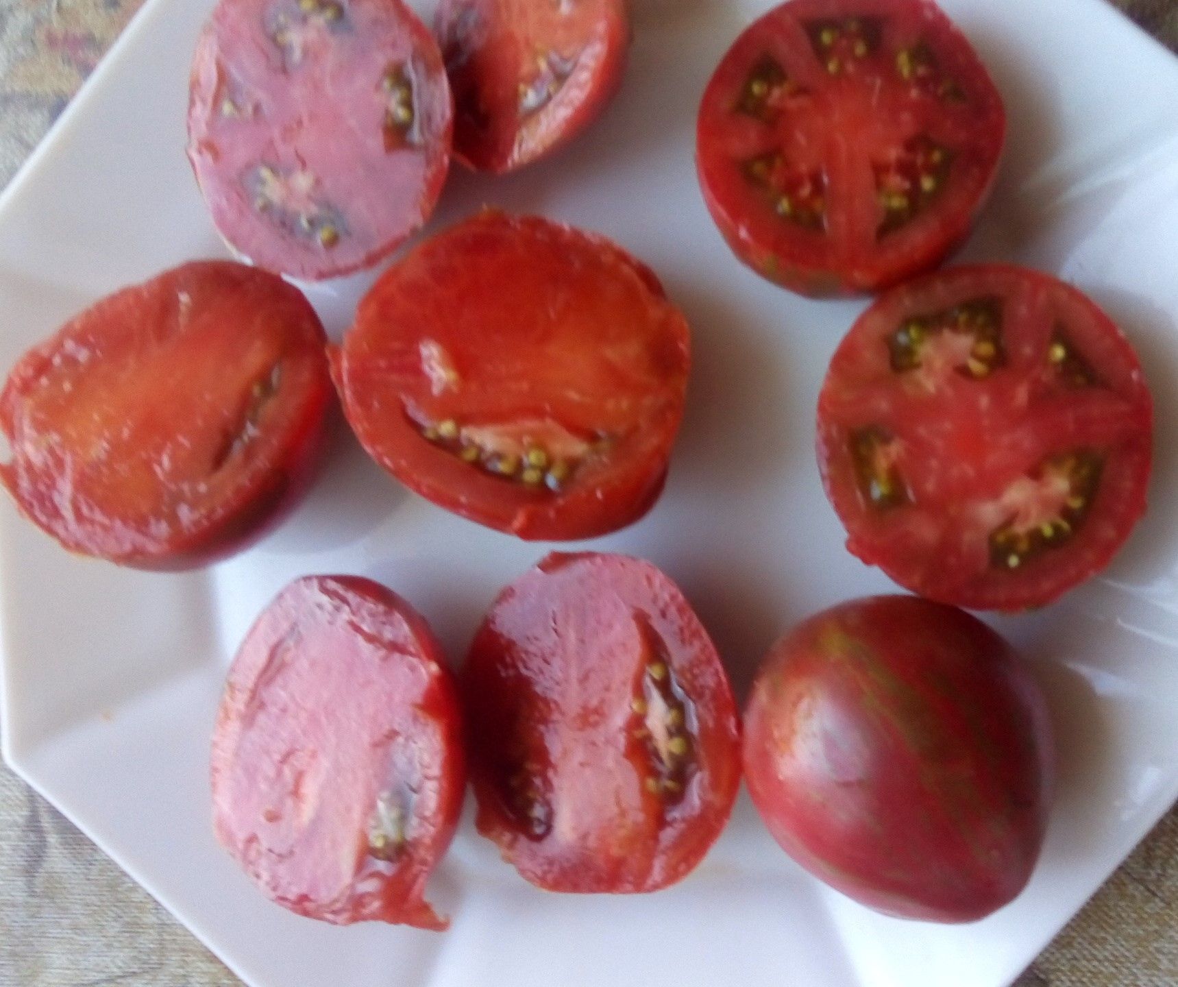 Индетерминантный (в ОГ около 1,5 м), среднеспелый сорт. Плоды округло-сердцевидные, бордово-зелено-коричневые, вес 70-150 грамм. Вкус со сладостью и кислинкой. Назначение универсальное. В упак. 10 шт.