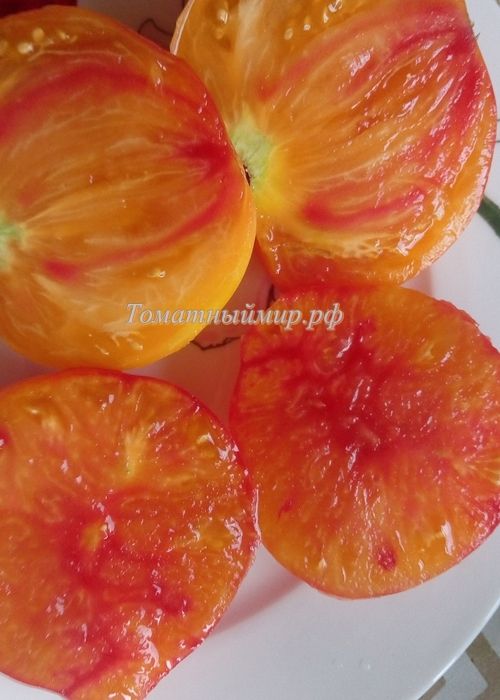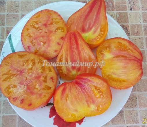 Среднеспелый, урожайный сорт. Куст высотой 1,8м. Плоды сердцевидные, оранжевые с розовыми разводами, сладкий, очень вкусный, вес 150-400 г. В упак 8 шт.