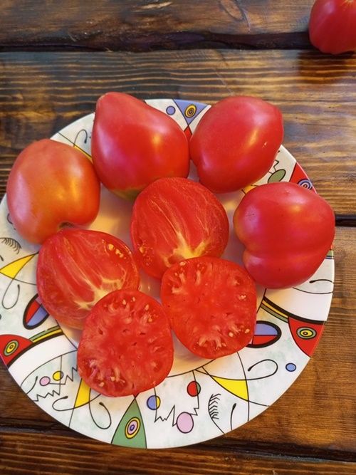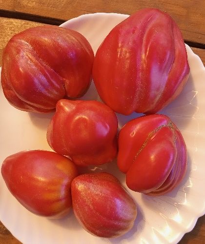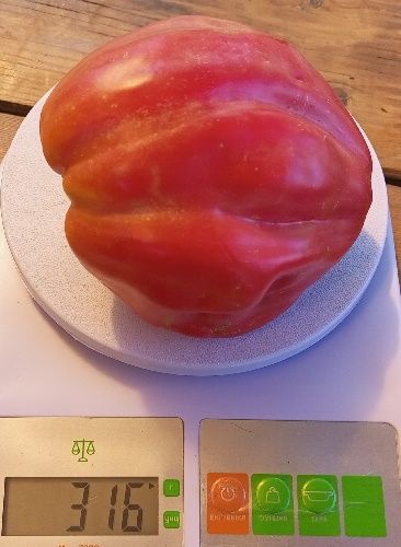Индетерминантный, очень мощный, высокорослый, среднепоздний сорт. Плоды сердцевидные, рифленые, розово-малинового цвета, мякоть сладкая, сочная. Вес 200-300 гр. Сорт салатный. В упак. 10 шт.