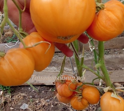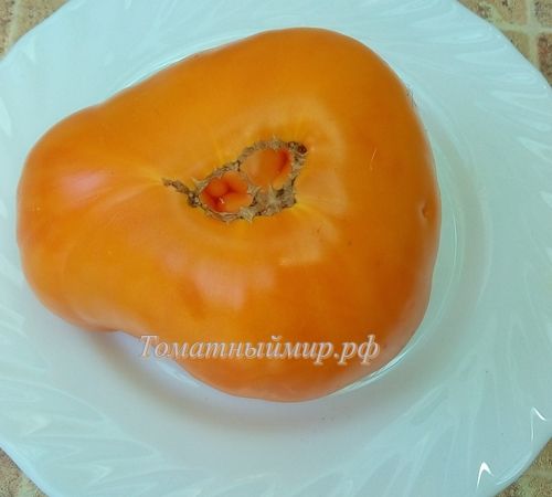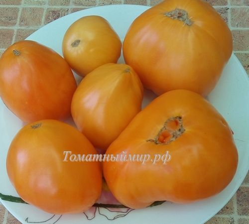Среднеспелый, индетерминантный, среднерослый сорт, высота куста в ОГ 1,4 м. Плоды сердцевидные, оранжевые, с очень хорошим вкусом, плотной, маслянистой мякотью. Вес 150-400 грамм. В упак. 10 шт.
