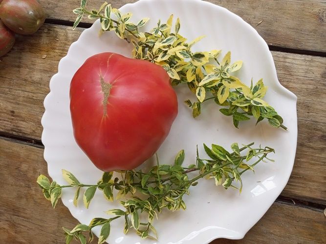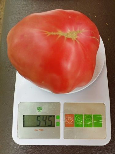 Среднеспелый, крупноплодный, индетерминантный сорт. Плоды бифштексного типа, малиново-розовые, крупные, вес 400-800 грамм. мякоть со сладостью, вкусная. Салатный сорт. В упак, 10 шт.