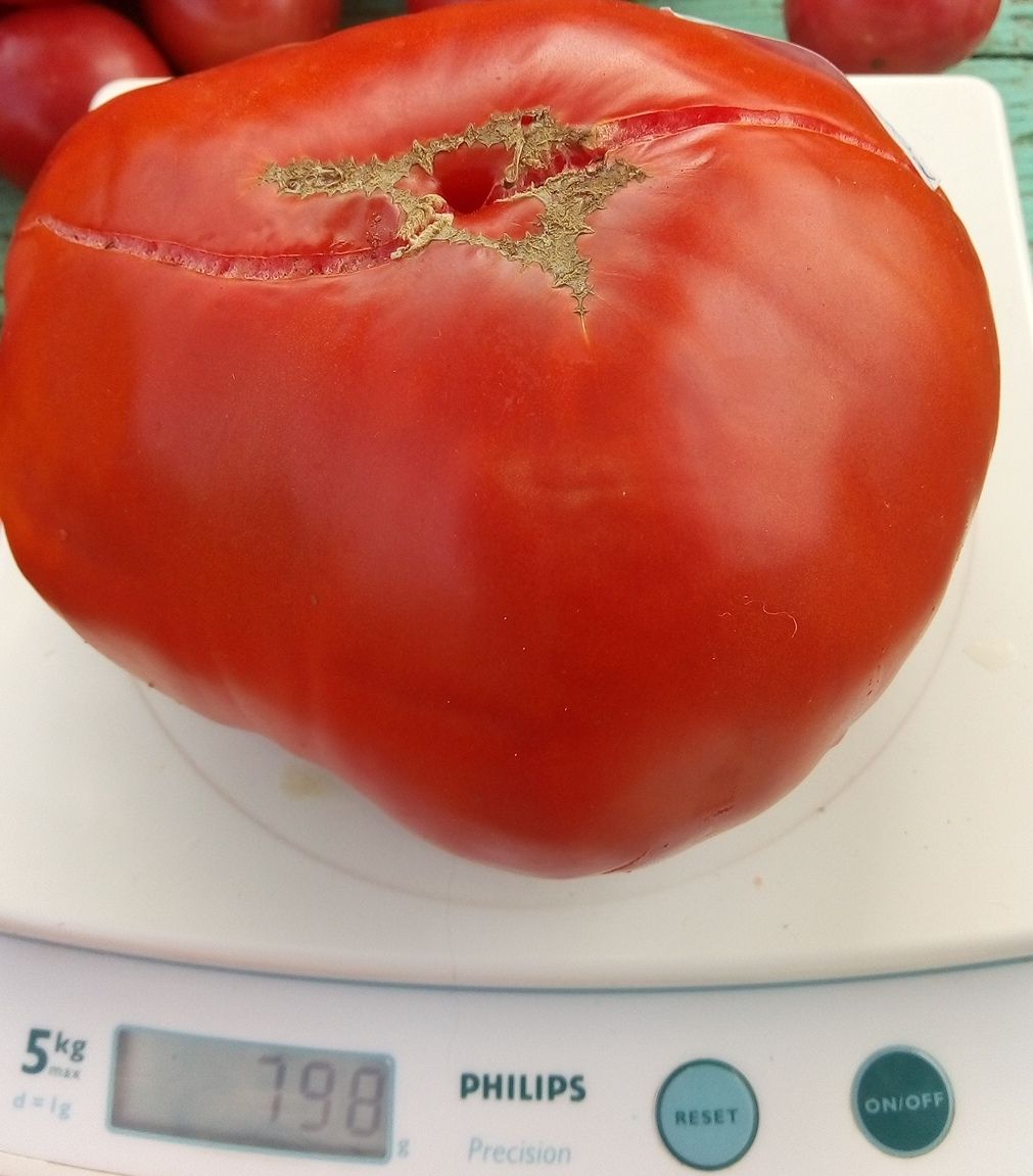 Высокорослый, среднеспелый сорт, очень урожайный сорт. Плоды очень крупные ярко-красные бифштексы , мясистые, сочные. Вкус со сладостью и кислинкой. Вес 300-800 грамм. В упак. 10 шт.