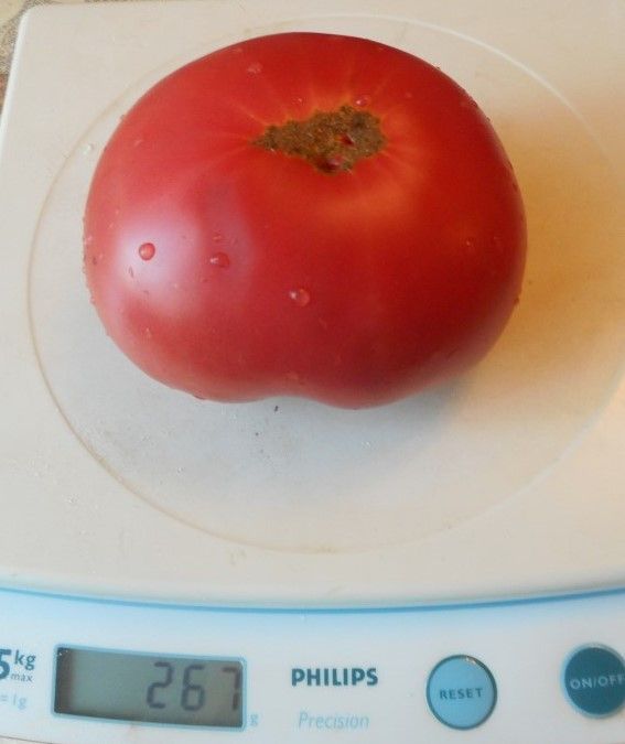 Среднеранний, высокорослый, куст в ОГ до 1,5 метров, урожайный сорт. Плоды плоскоокруглые, бифштексного типа, малиново-красные, мякоть насыщенно малинового цвета, вес 250-400 грамм, очень вкусные, сладкие с кислинкой, Мясистые, сочные. Сорт салатный, также хорошо использовать для сока. В упак. 10 ш