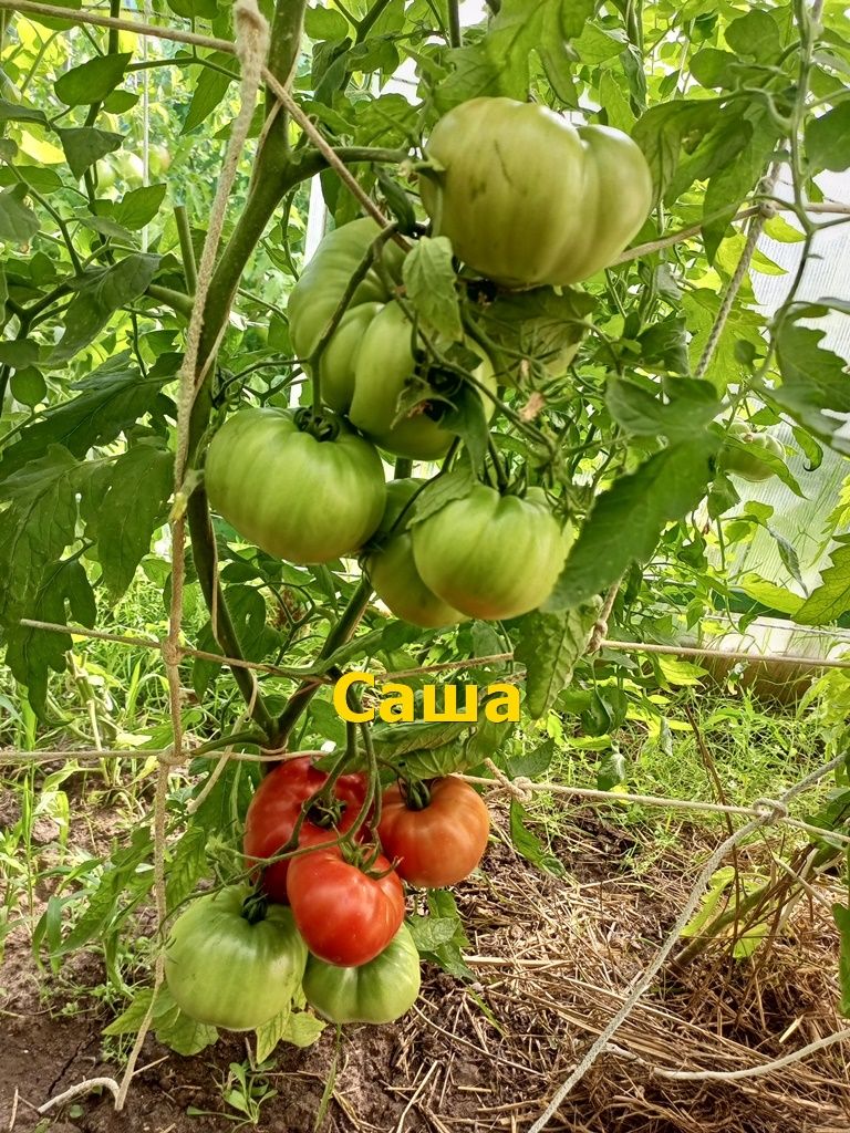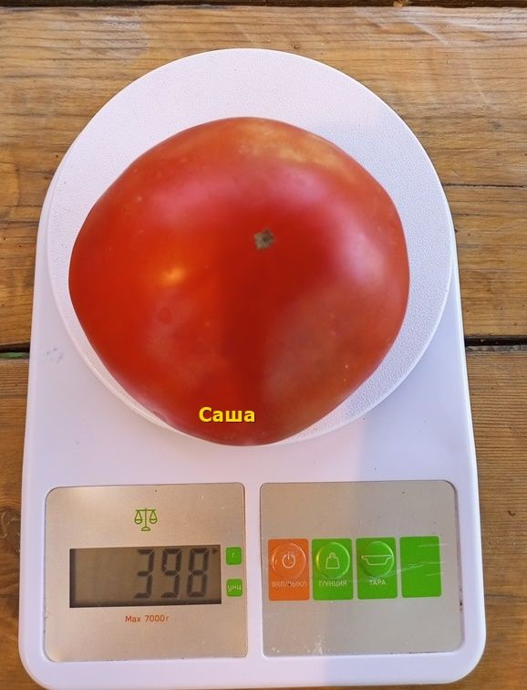 Сорт раннеспелый, высота куста в открытом грунте до 1 м, в теплице вырастает до 1,8 м. Куст крепкий, плодоношение длительное. Плоды округлые, насыщенного красного цвета, весом 300-400 грамм. Мясистые, сочные. Сорт салатный.