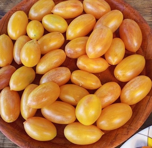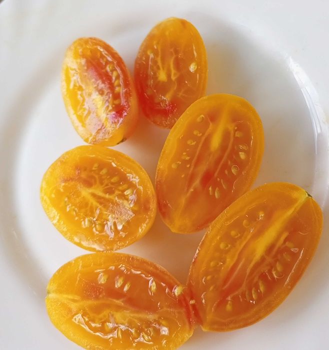 Индетерминантный, высокорослый, среднеспелый сорт томата коктейльного типа. Плоды удлиненные сосульки с острым носиком, биколоры. Цвет зеленовато-желтый, (в сильной спелости желто-оранжевые) с розовым румянцем. Вес плодов около 30 грамм. Вкус отличный, сладкий, фруктовый, с небольшой терпкостью. В упак. 10 шт.