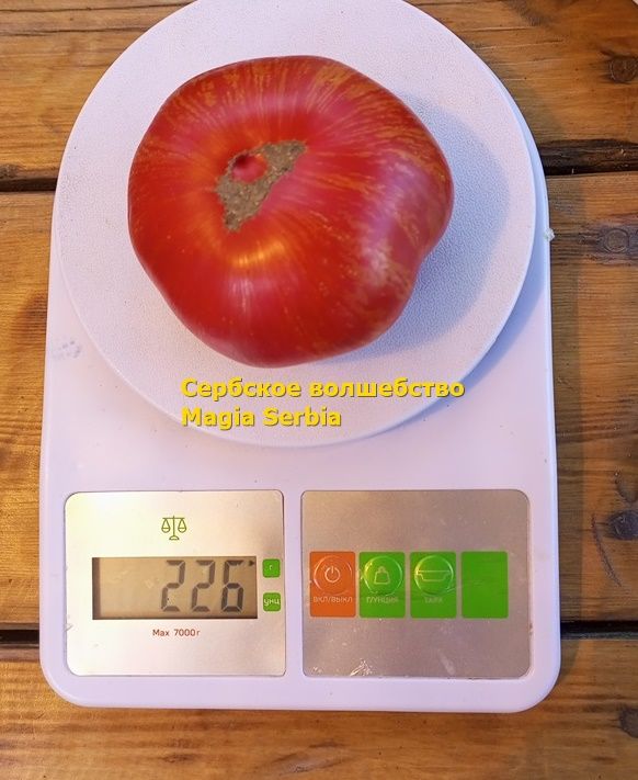 Высокорослый, среднеранний сорт. Плоды плоскоокруглые, чуть приплюснутые, весом 150-250 грамм, очень красивые, красные, с золотистыми полосками и антоциановым напылением, плотные, мясистые. Мякоть малиново-красная. Вкус сладкий. В упак. 10 шт.