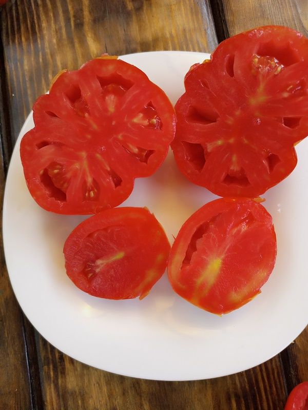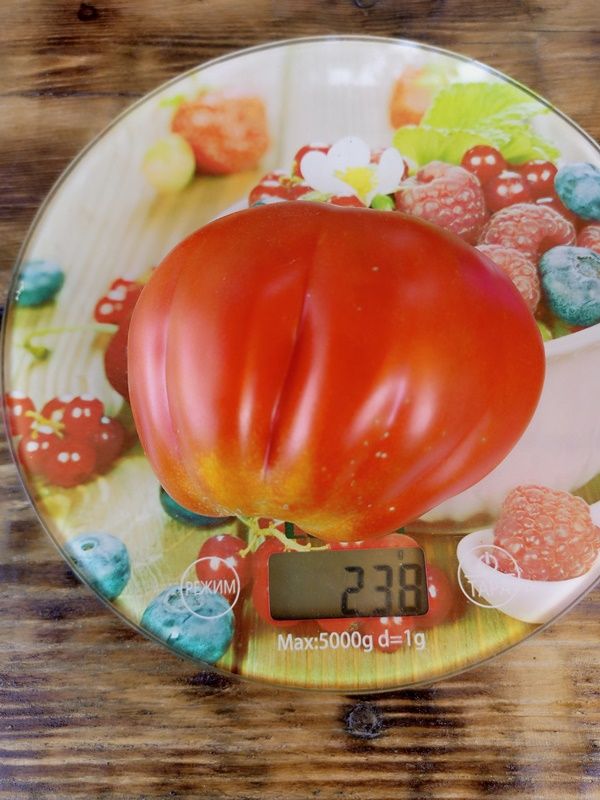 Индетерминантный, высокорослый, с мощным кустом, очень урожайный сорт, с длительным плодоношением. Плоды грушевидные, ребристые, красные, весом от 200 до 350 грамм, очень вкусные, сладкие, без кислоты. Сорт салатный и для всех видов переработки. В упак. 10 шт.