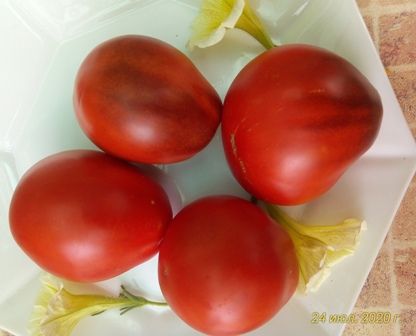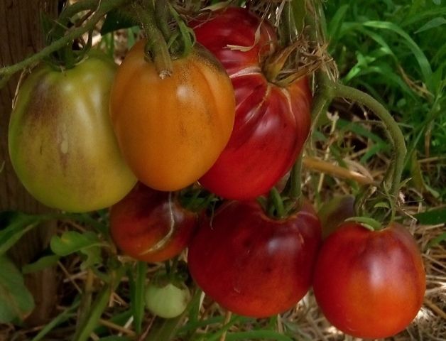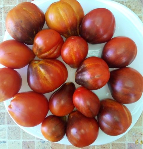 Высокорослый, среднеспелый сорт с длительным периодом плодоношения. Плоды грушевидные, интересной расцветки, плечики темные, внизу красновато-коричневые. Вкус сладкий, ароматный без кислоты. Мякоть ярко-красного цвета. Очень интересный, урожайный и вкусный сорт. В упак. 8 шт.
