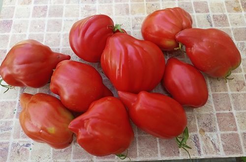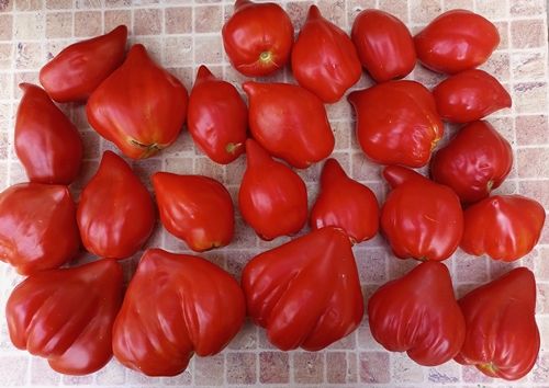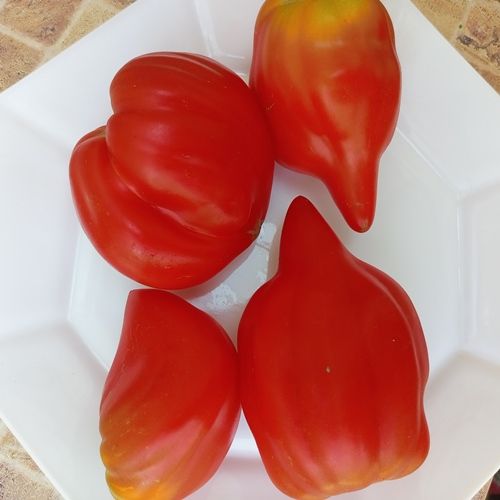 Высокорослый, среднеспелый сорт. Плоды интересные, рифленые, с длинным изогнутым носиком, красные, мякоть сочная, с хорошим вкусом. Вес 150-200 грамм. Салатный сорт. В упак. 8 шт.