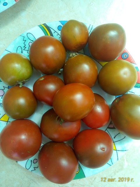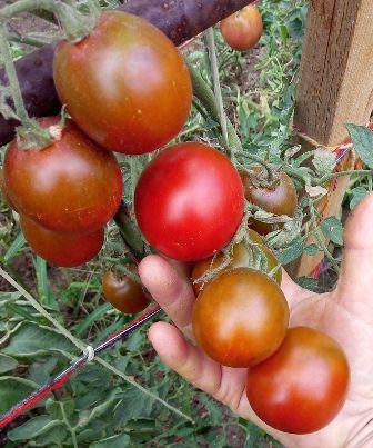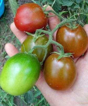 Высокорослый, в ОГ 1,3 метра, среднеспелый, урожайный сорт томата. Плоды красивые, блестящие, пурпурно-черно-зеленые, округлые и слегка вытянутые сливы, в кисти по 10-12 штук, с плотной кожицей, хорошо хранятся. Вкус со сладостью, и пряными нотками. Можно хранить кистями. В упак. 10 шт. семян.
