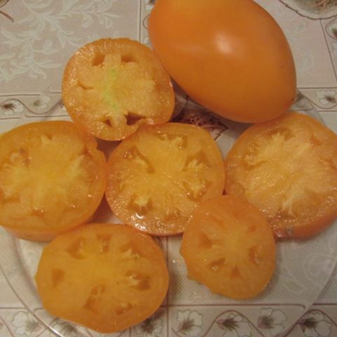 Индет, среднеранний, высотой был до 1,7 метра, Плоды крупные, удлиненные сливы, некоторые на первых кистях сдвоенные. Плотные, мясистые, очень хорошего вкуса, весом 150- 300 гр. Салатный сорт. В упак. 8 шт.