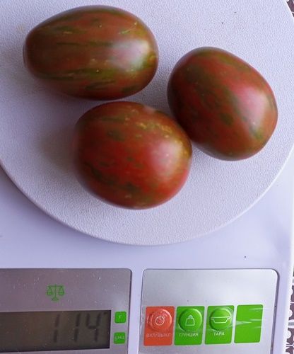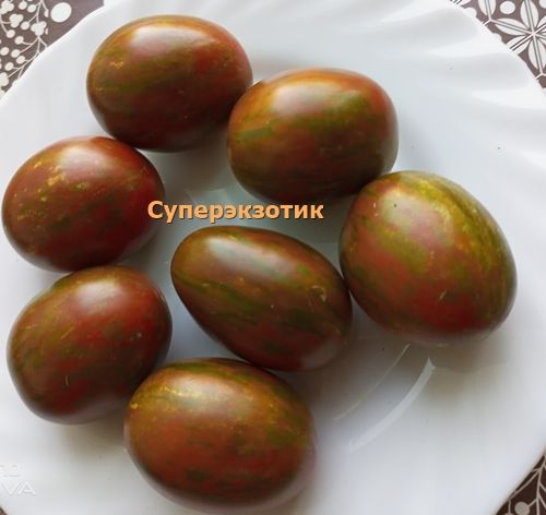 Среднеспелый, индетерминантный, в ОГ был около 1,5 метра, урожайный кистевой сорт. Плоды овальные полосатые сливки, темно-красные с темно-зелеными полосами и штрихами, вес 30-50 грамм, отлично подходят для цельноплодного консервирования. В упак. 10 шт.