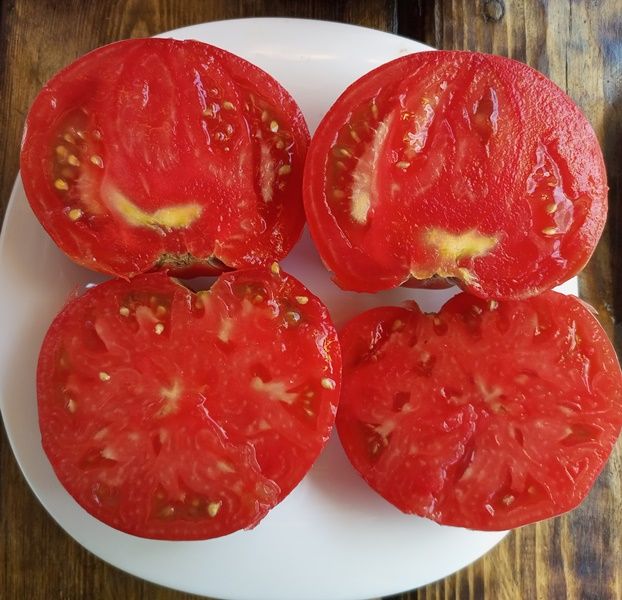 Высокорослый, среднеспелый, крупноплодный, урожайный сорт. Плоды плоскоокруглые, малиново-красные, 300-700 грамм, вкус очень хороший, сбалансированный, сладкий с кислинкой. Вкусный салатный сорт. В упак. 10 шт.