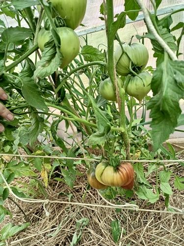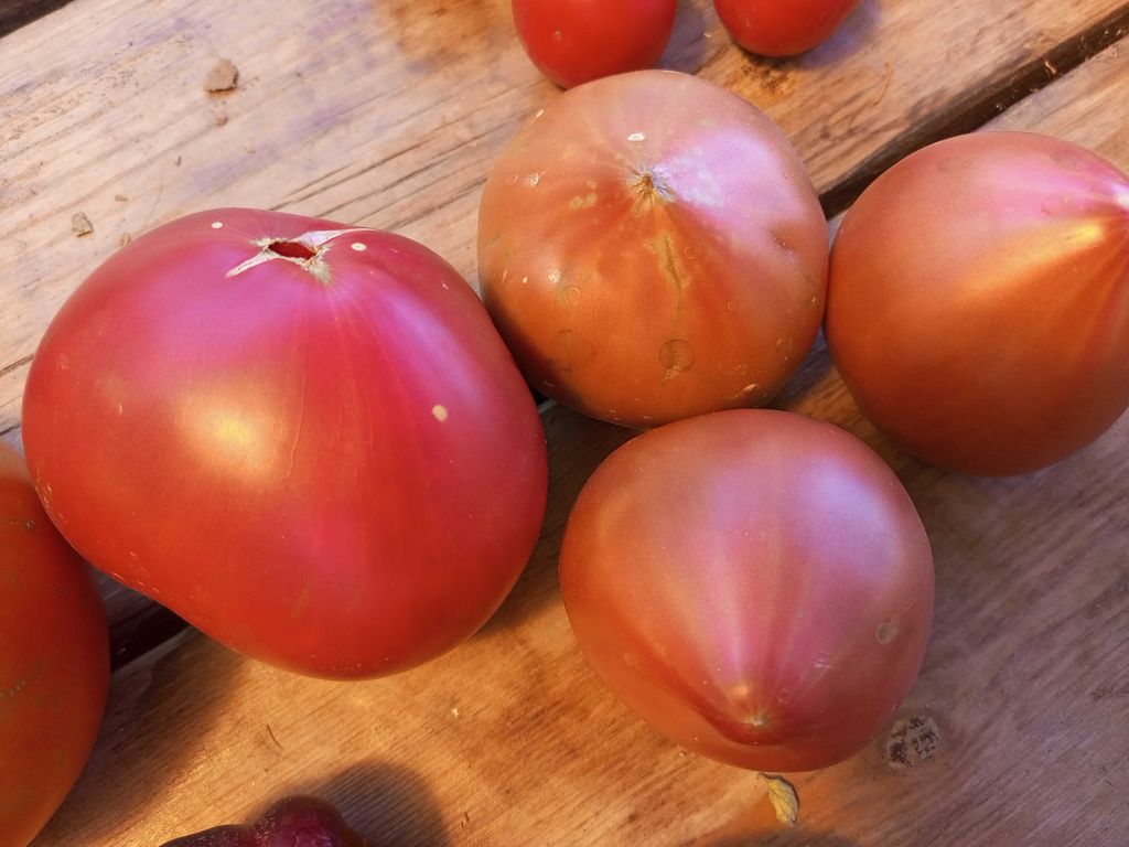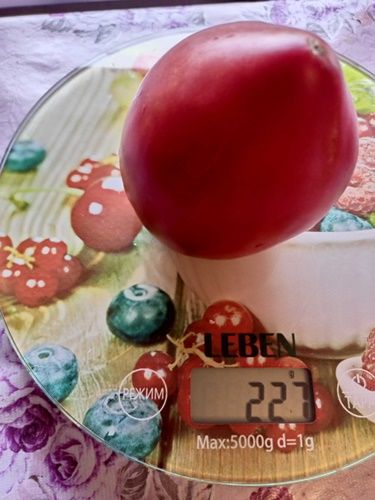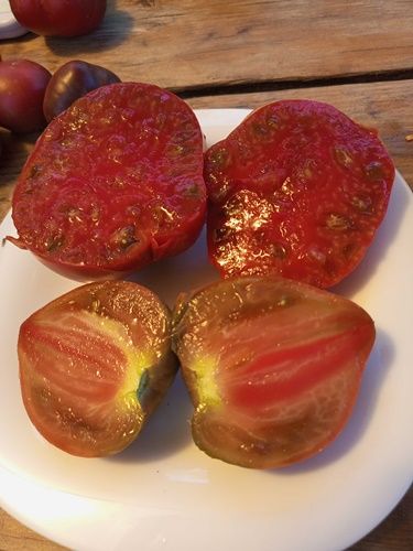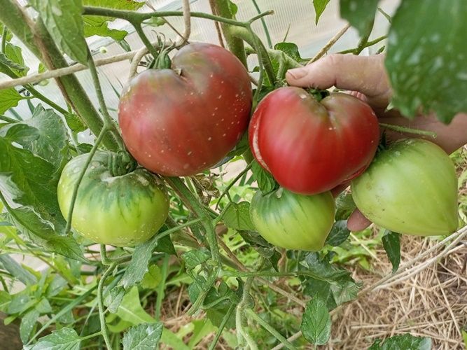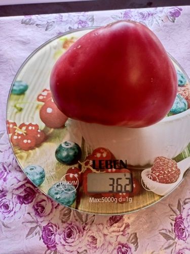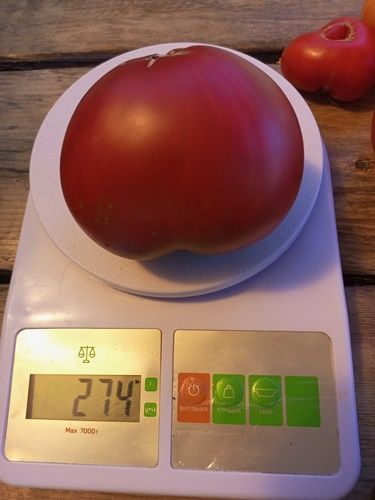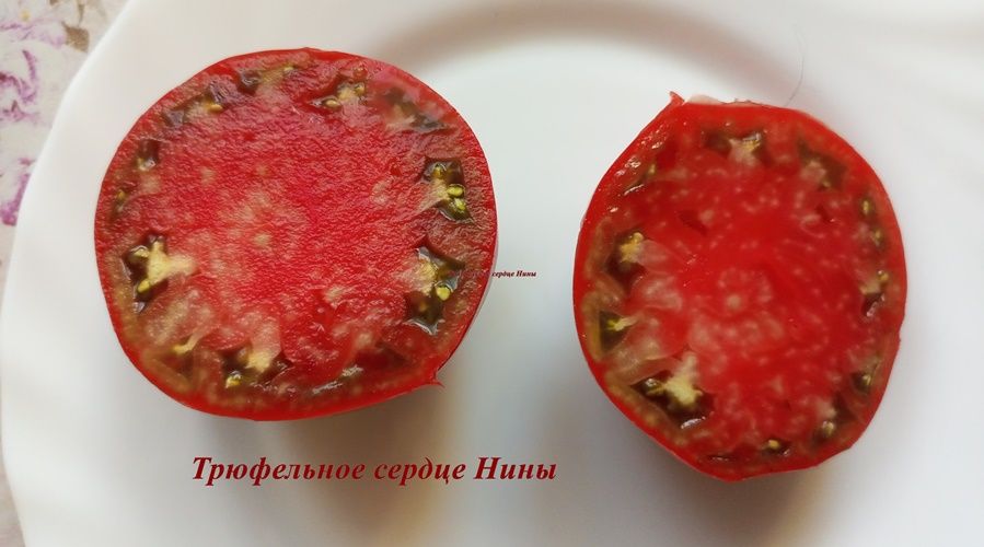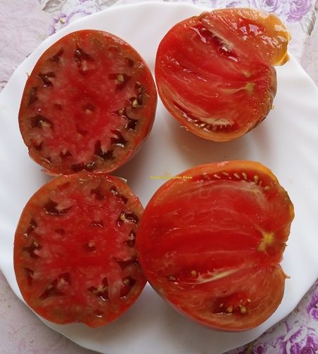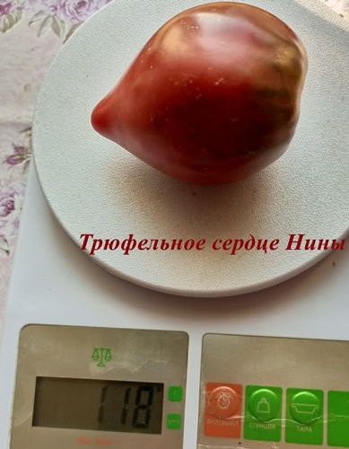 Индетерминантный, среднеспелый сорт. Плоды сердцевидные, с небольшой ребристостью, бордово-коричневого цвета, вес 100-350 грамм. Мякоть плотная, вкус со сладостью.
