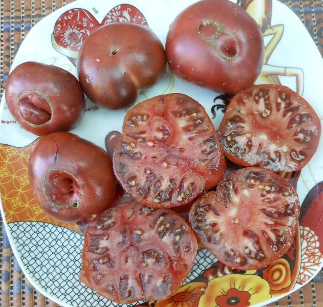 Индетерминантный, среднеспелый сорт. Плоды плоскоокруглые, ребристые у плодоножки, бордово-коричневого цвета. Вкус сладкий с небольшой кислинкой.. В упаковке 10 штук.