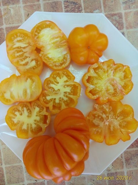 Среднепоздний, высокорослый сорт для выращивания в теплицах. Плоды плоскоокруглые, сильноребристые, многокамерные, вес 150-200 грамм. Мякоть имеет насыщенный томатный вкус и аромат, поэтому лучшее применение сорта это нарезка, салаты. В упак. 10 шт