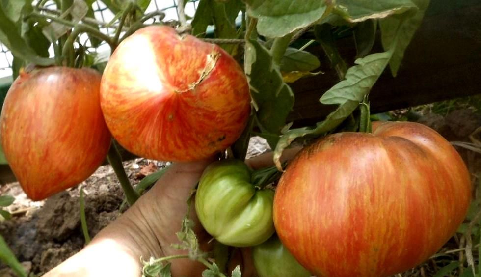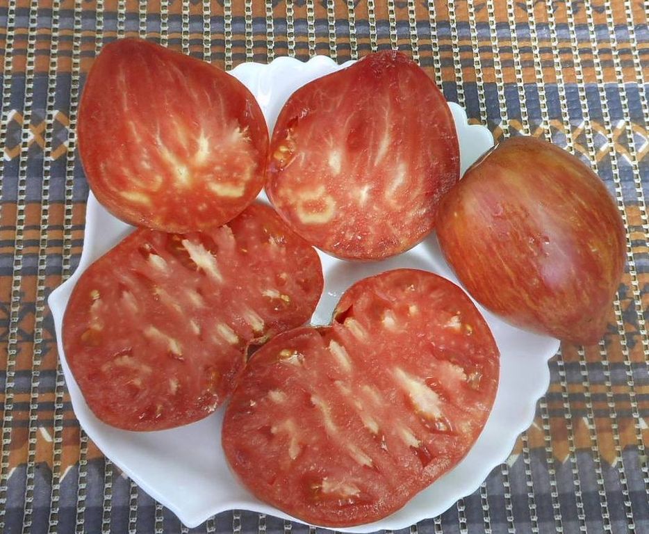 Высокорослый, среднеспелый сорт. Плоды малиновые сердца с золотистыми полосками, на солнце на плечиках проявляются темные антоциановые пятна, вес от 150 до 300 гр , мясистые, сладкие. Для свежего потребления, приготовления соков, соусов. В упаковке 8 штук семян.