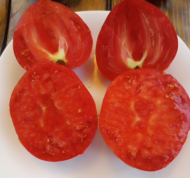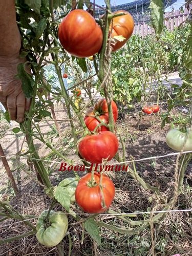 Куст высотой до 1,5 метра, среднеранний.урожайный. Плоды сердцевидные, красного цвета, с плотной мякотью, весом 200-400 грамм, мясистые, вкус томатный, со сладостью. Назначение универсальное, прекрасны для свежего употребления, а также для соусов, соков.