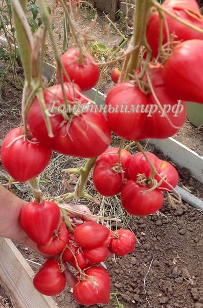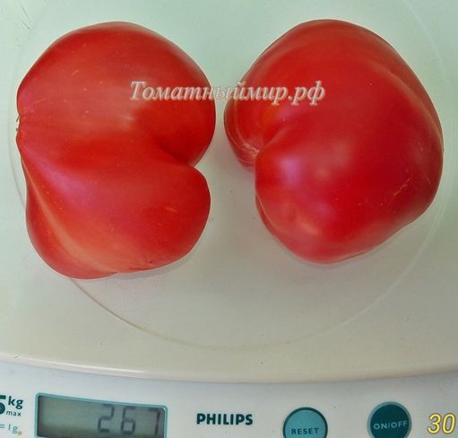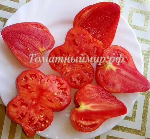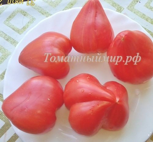 Индетерминантный, среднеспелый сорт. Плоды сердцевидные, красные. Вес 100-200 грамм. Мякоть плотная, мясистая, сладкая. Салатный сорт и для переработки. В упак. 10 шт.