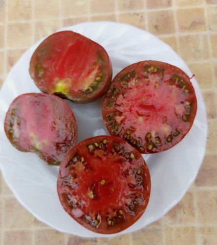 Среднеспелый, индетерминантный урожайный сорт. Плоды бордово-коричневые, сладкие, сочные, вкусные, 150-250 грамм, Салатный сорт. В упак. 10 шт.