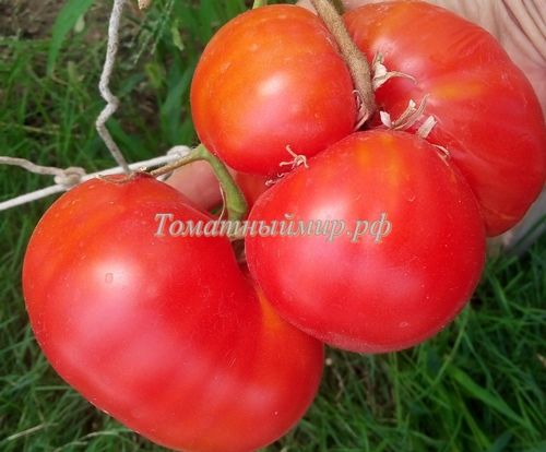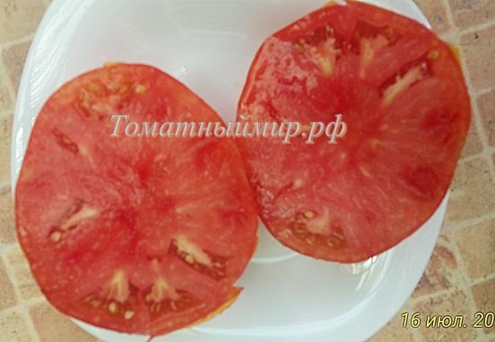 Индетерминантный, среднеспелый урожайный сорт народной селекции. Куст в теплице был до 1,7 м, в ОГ около полутора метров. Плоды округлые, красные, плотные, мясистые, сладкие, вес 300-400 грамм. Сорт салатный и для переработки на сок, пасту, соусы. В упак. 10 шт.