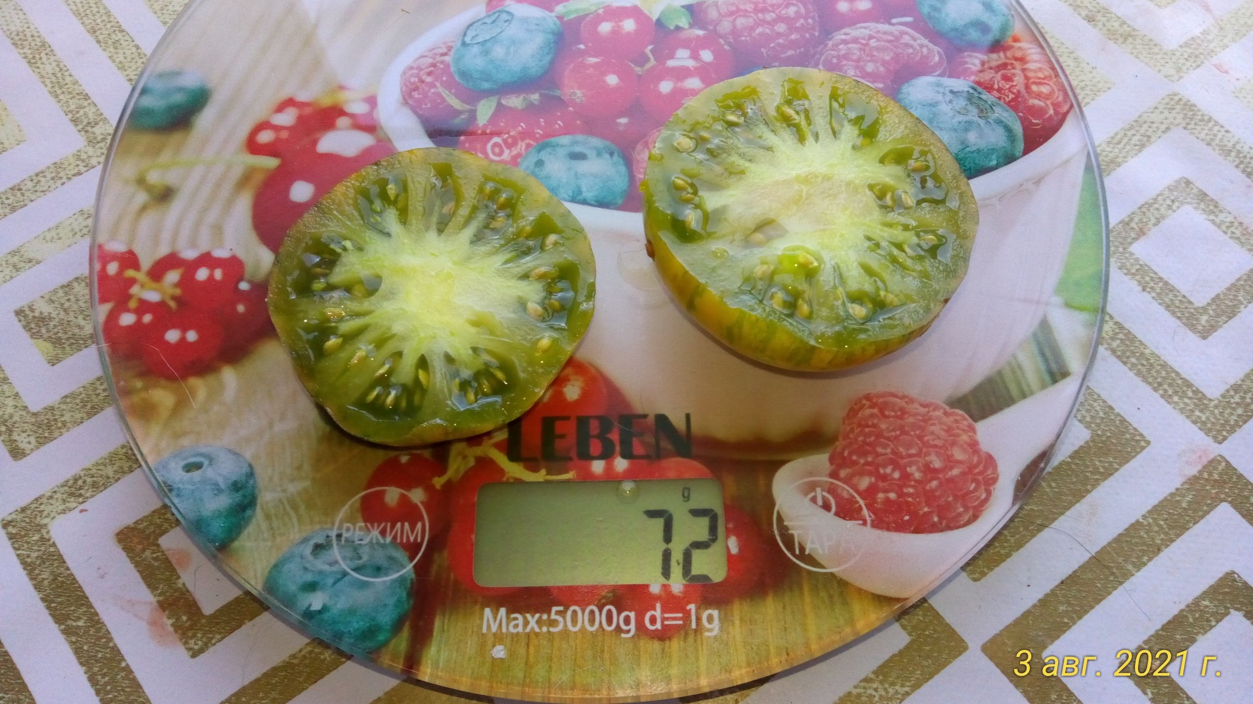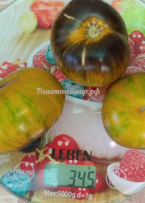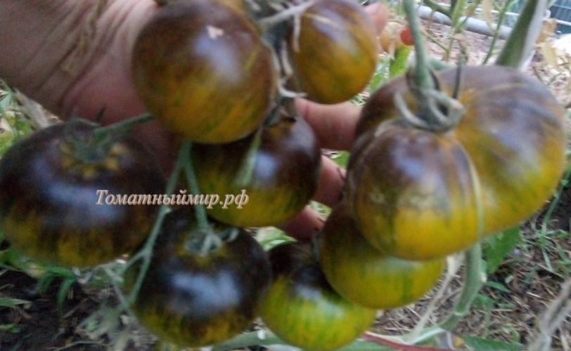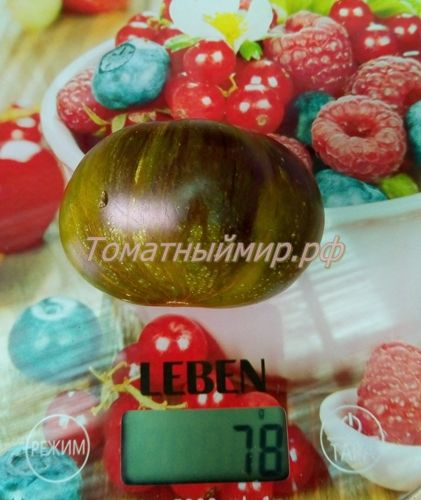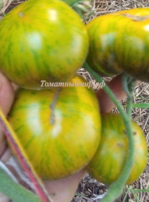 Индетерминантный, среднеспелый. Помидоры округлые,слегка приплюснутые, 60-150 грамм. При созревании плечики становятся антоциановые, а низ томатов зеленовато-охряный. На разрезе зеленые, вкус сладкий, пряный. В упак. 8 шт.