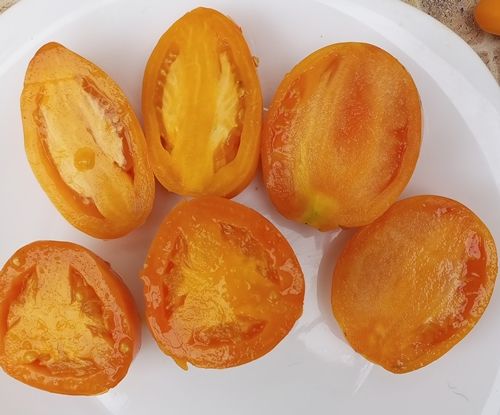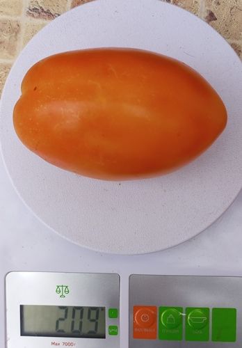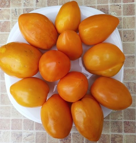 Среднеранний, детерминантный сорт, куст около 1,2 метра в ОГ. Плоды удлиненно-сердцевидные, чаще крупная слива с носиком, желто-оранжевые. Вес плодов 150-250 грамм. Мякоть плотная, со сладостью. Сорт универсальный, хорош и в салатах и подходит для цельноплодного консервирования, в банках кожица не лопается. В упак. 10 шт.