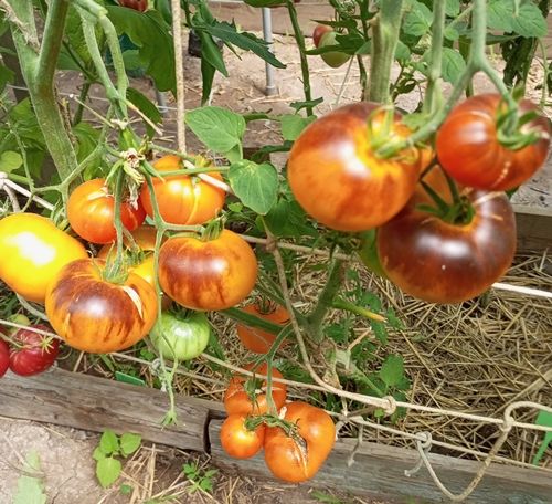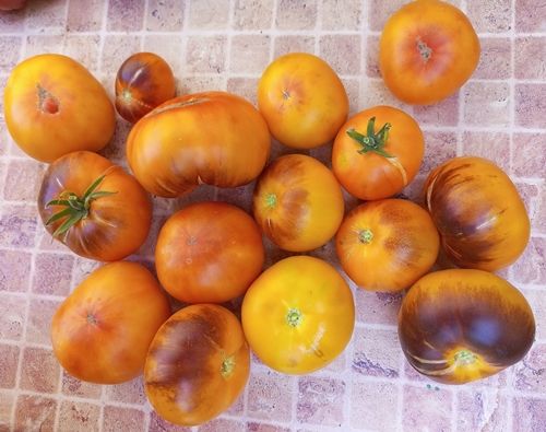 Индетерминантный, среднеранний сорт. Плоды округлые, оранжево-желтые с антоциановыми плечиками и полосками. Вес 100-200 грамм. Мякоть плотная, сладкая. Сорт салатный и для переработки. В упак. 10 шт.